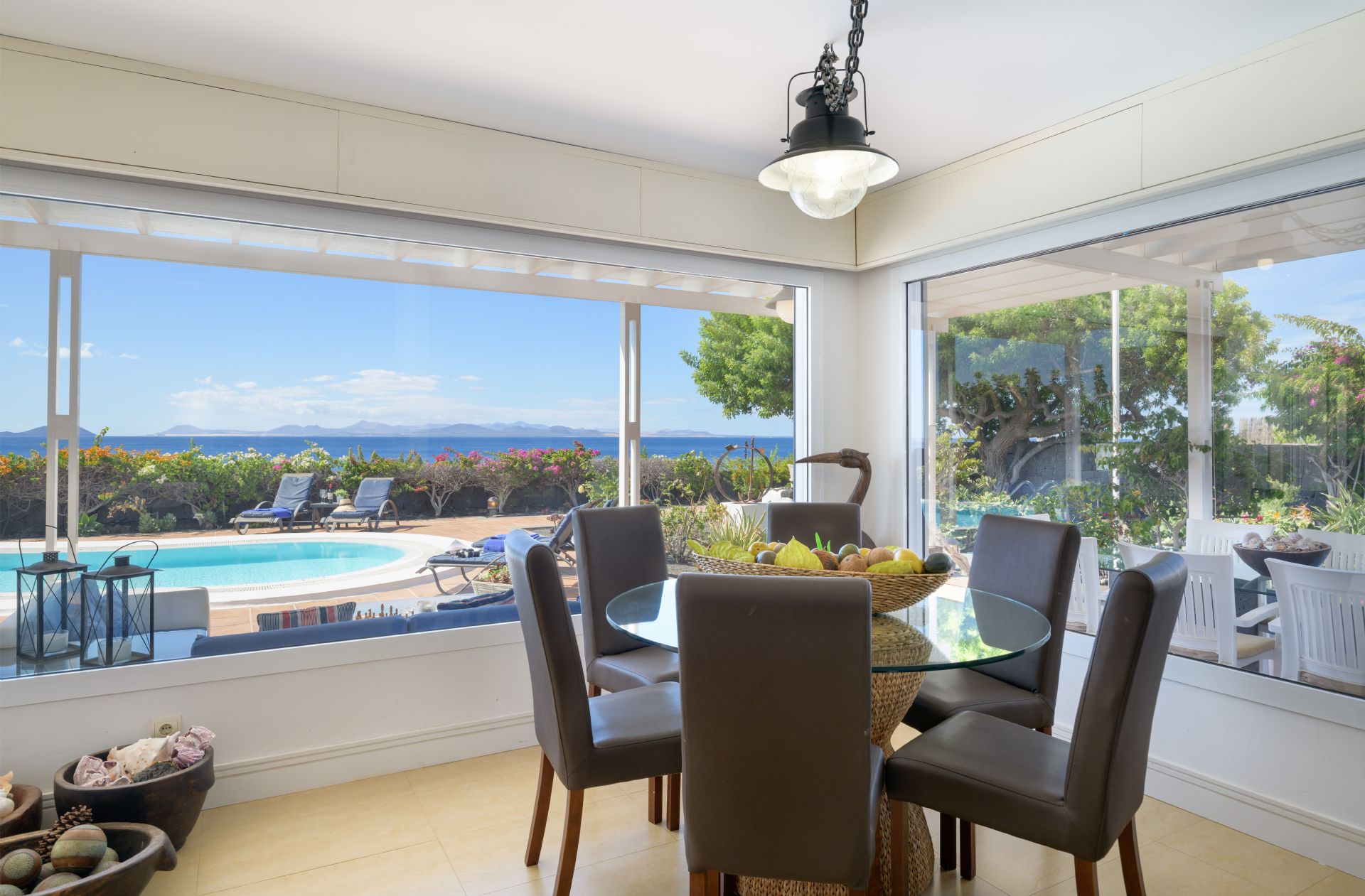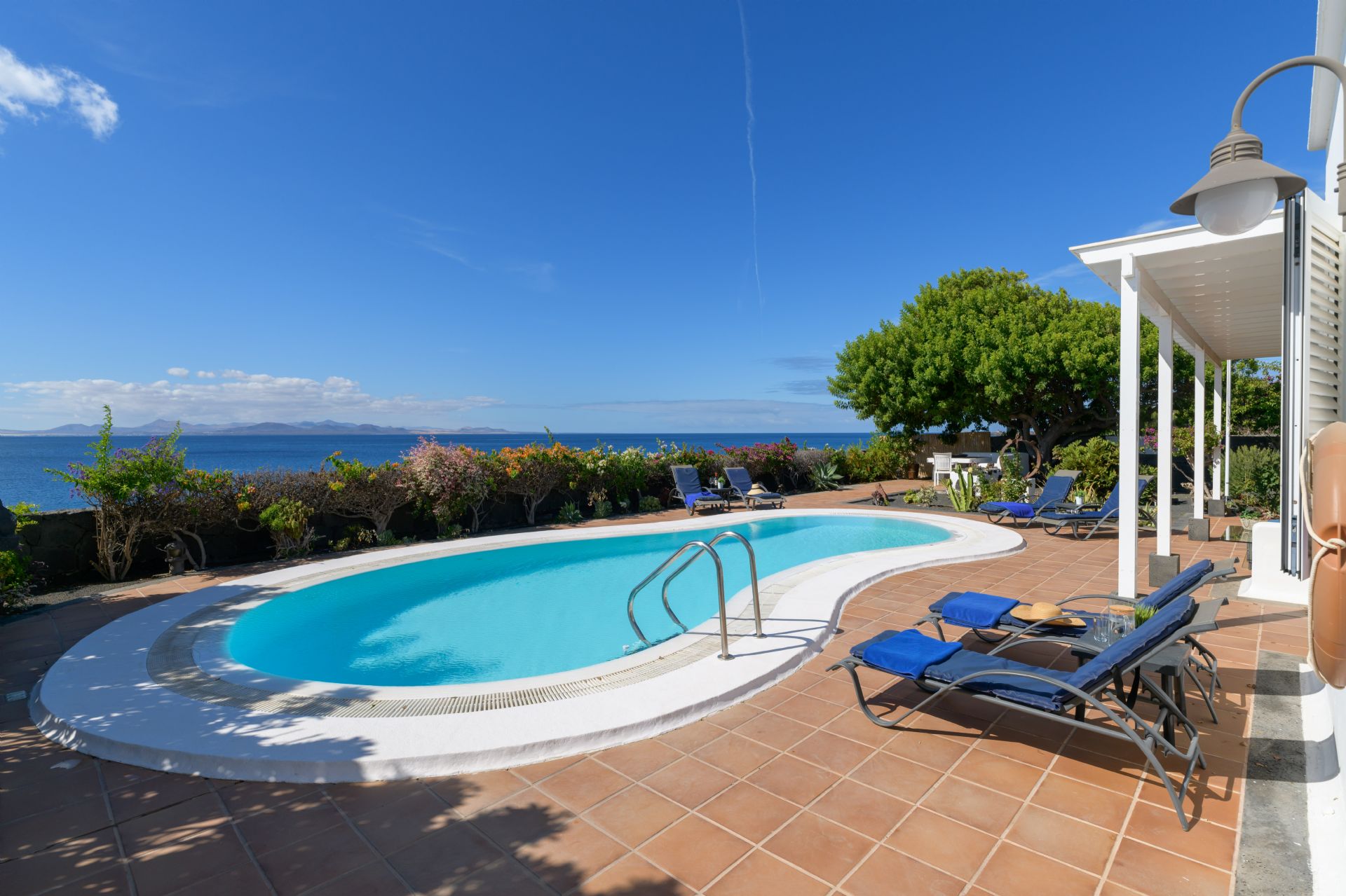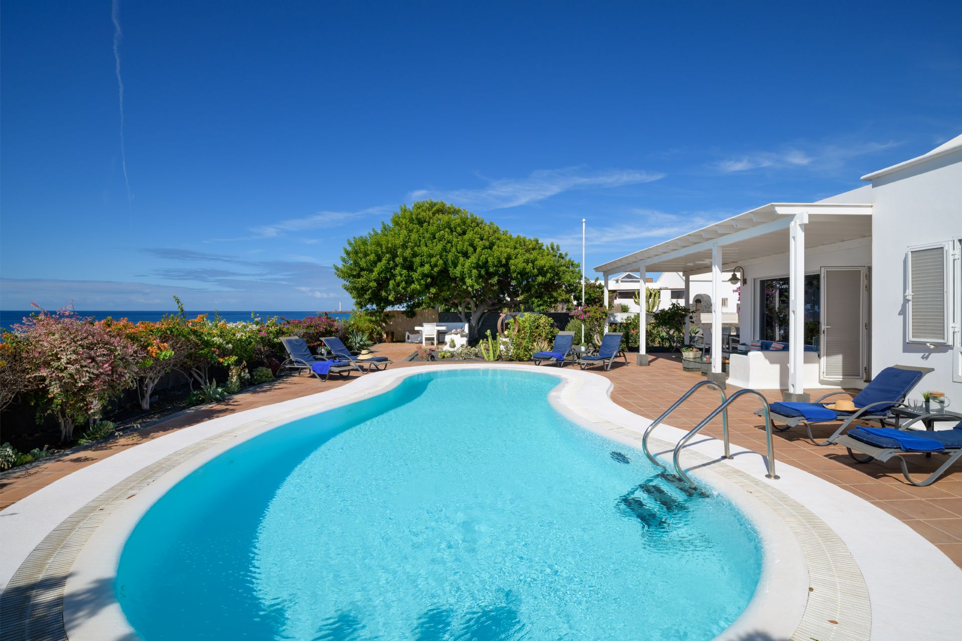 We are delighted to be able to offer this stunning villa in a rare unrivalled frontline location in Playa Blanca with breath taking views of the coast, to sea, and the islands of Fuerteventura and Los Lobos. The Playa Real estate is gated with a private gate and ramp onto the seafront walkway.