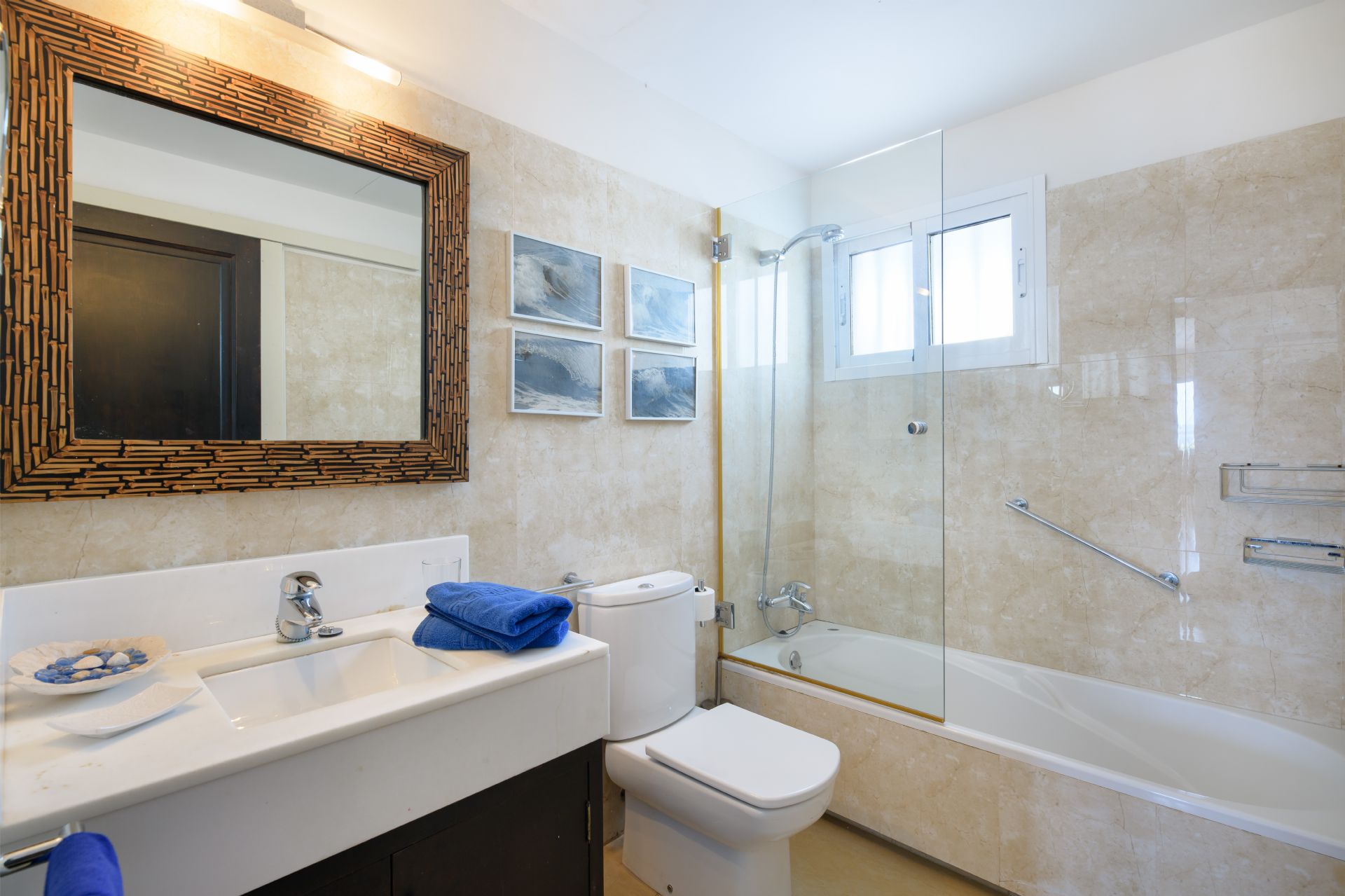 The Playa Real estate is gated with a private gate and ramp onto the seafront walkway. Playa Flamingo beach with its cafes, restaurants, and supermarkets, is just 7/8 minutes walk away, with superior restaurants 6 to 7 minutes walk at La Mulata, Natura beach. Its decoration is modern with many small details that make the villa a home from home. Everything is reflected in the tour of the villa – click the orange logo. The villa has 3 air conditioned bedrooms and 3 bathrooms, 2 en suite. The beautiful master bedroom bathroom has a large walk-in power shower, as has one of the twin bedrooms. The other bathroom has a bath with shower over. The large air conditioned lounge/dining room has simply stunning views out to sea and the islands.Midweek clean on stays for 10 nights or more.