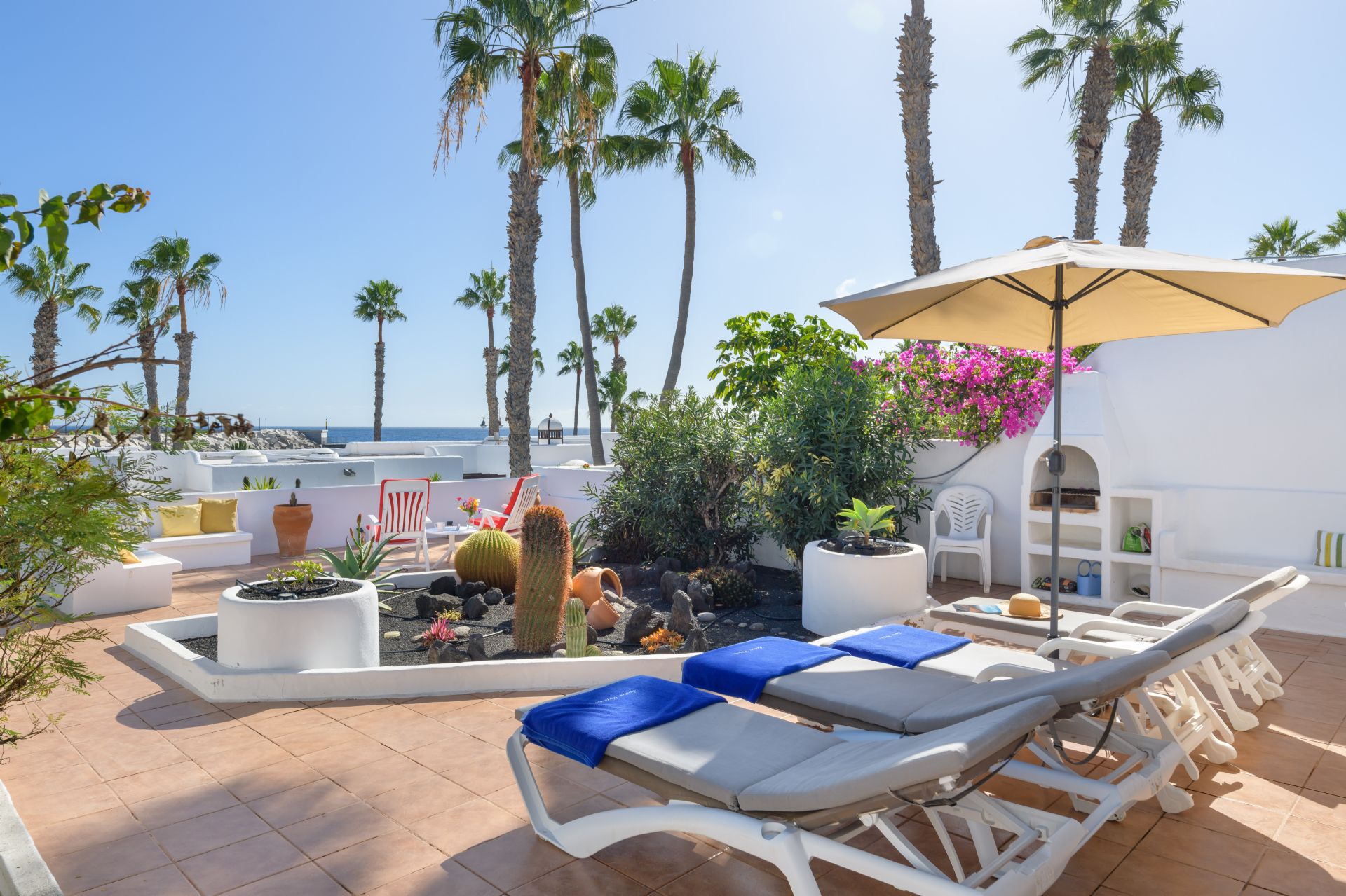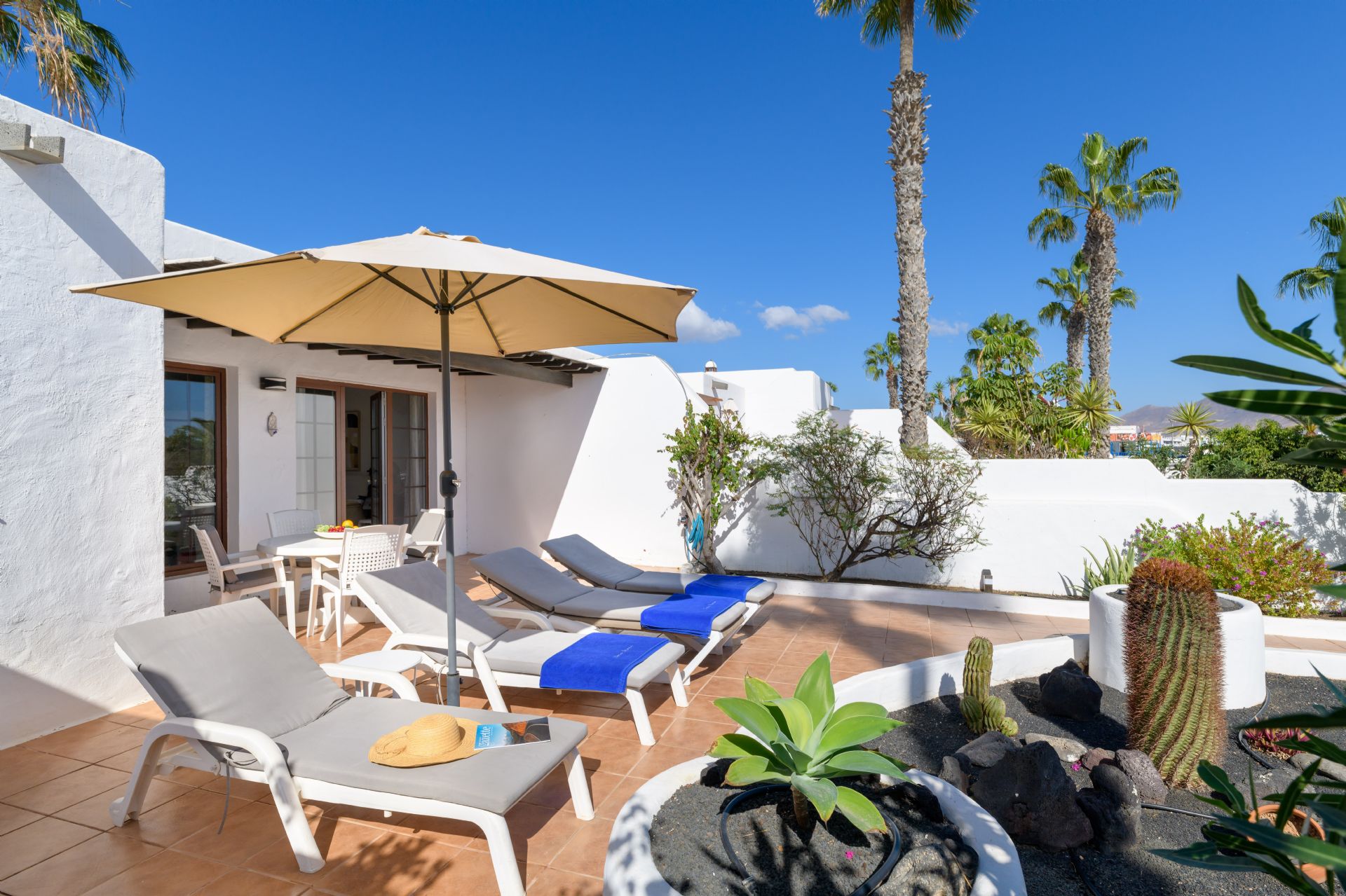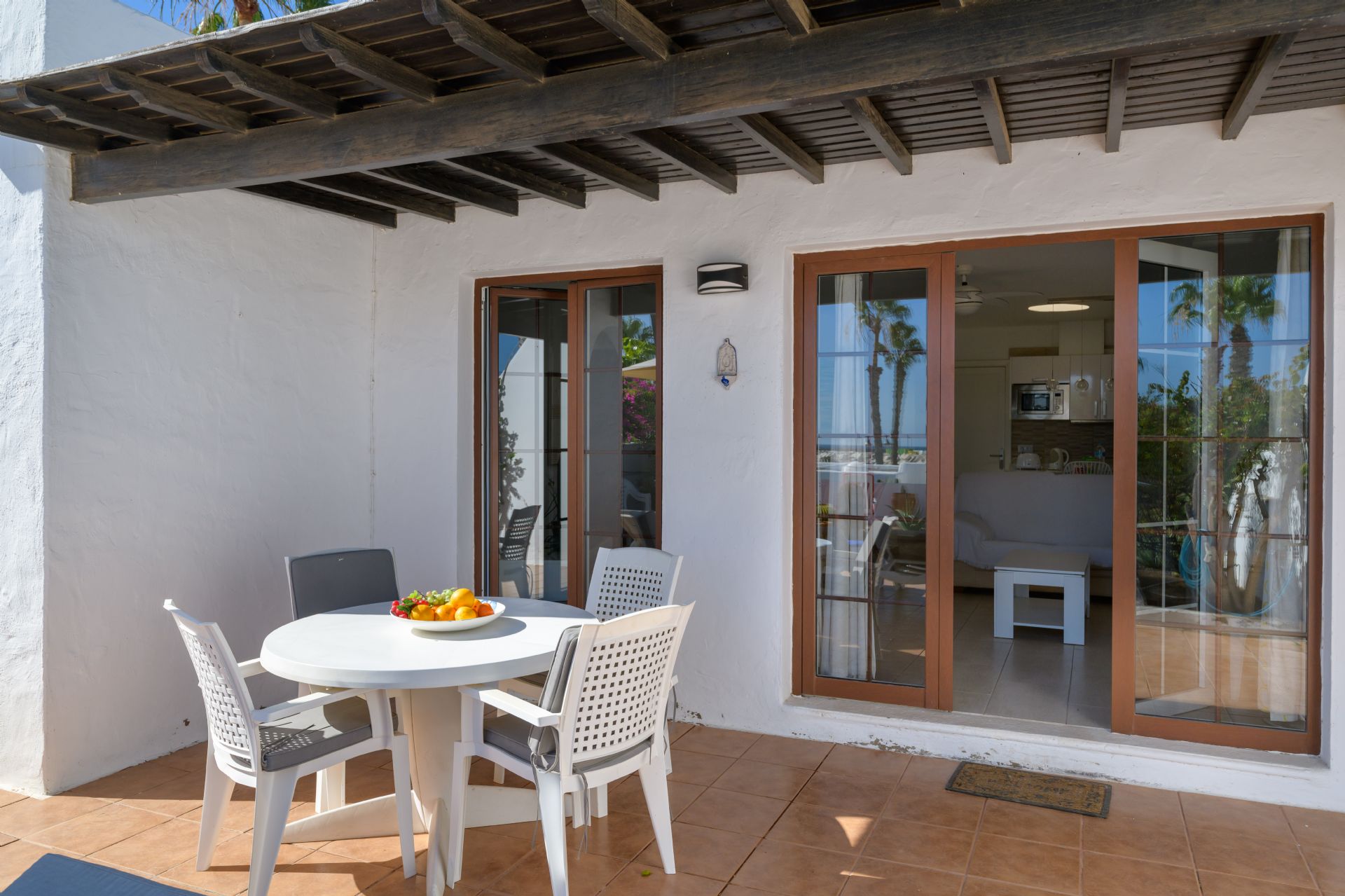 Exterior: Puerto Chico 4 has a private terrace/patio area which leads out from the living room. It features patio furniture and a built in barbeque perfect for eating alfresco and lovely sea views. The heated communal pool is located in the centre of the complex down the steps at the rear of the patio and through the mature gardens. Situated on the best complex in Playa Blanca, Puerto Chico offers guests a stunning front line location, lovely sea views, a large heated pool, mature gardens, a selection of international TV channels plus a reception on site.